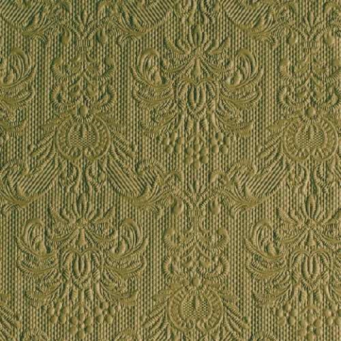 A(z) Elegance Olive Green dombornyomott papírszalvéta 33x33cm,20db-os egy stílusos és igényes darab papír anyagból készült , mérete: Kiterítve 33x33cm . A termék a(z) Ambiente márka kínálatából származik , eredeti származási helye: Hollandia.