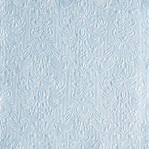 A(z) Elegance pearl blue dombornyomott papírszalvéta 33x33cm,15db-os egy stílusos és igényes darab papír anyagból készült , mérete: Kiterítve 33x33cm . A termék a(z) Ambiente márka kínálatából származik , eredeti származási helye: Hollandia.