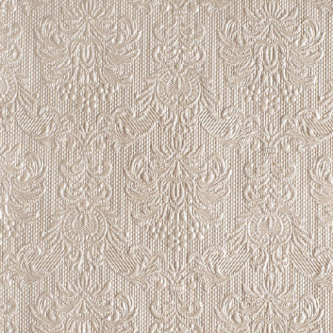 A(z) Elegance pearl taupe dombornyomott papírszalvéta 33x33cm,15db-os egy stílusos és igényes darab papír anyagból készült , mérete: Kiterítve 33x33cm . A termék a(z) Ambiente márka kínálatából származik , eredeti származási helye: Hollandia.