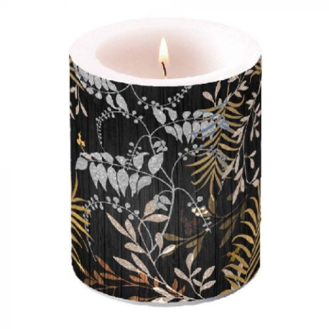 1 kép AMBIENTE Luxury Leaves black átvilágítós gyertya 12x10cm
