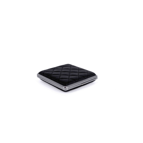 Fekete műbőr cigaretta tárca, 20 szál cigaretta tárolására alkalmas. A belsejében található gumiszalagok segítenek rendben tartani a cigarettákat a tokban. Gombnyomásra nyílik. A cigaretta tárca belső zsebbe is könnyedén elfér, így bárhova