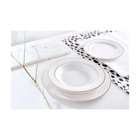 Ambition Aura Gold 18 részes étkészlet: Elegáns terítés minden alkalomra ✨ Ez a gyönyörű 18 részes Ambition Aura Gold étkészlet tökéletes választás mindennapi és ünnepi alkalmakra egyaránt. Az arany szegély elegáns megjelenést kölcsönöz, feldobva az...