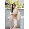 WOMEN'S TRI-BLEND LEISURE PANTS 50% poliészter, 25% pamut, 25% viszkóz 2,5 cm-es eltakart rugalmas derékrész saját anyagú, látható húzózsinórral 6,4 cm-es bordás mandzsetták a nadrágszárakon Oldalsó varrás Kétszeres szatén borítással ellátott razor