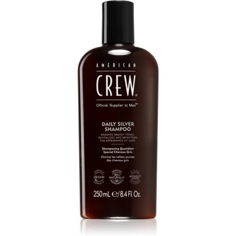 American Crew Daily Silver sampon ősz hajra, 250 ml- Az ősz, vagy őszülő hajban lévő sárgás tónusok ellen hatnak az összetevői- A hidrolizált tejprotein kondícionál, illetve küzd a haj szárazsága ellen, miközben fenntartja nedvességtartalmátHasználata: - Vizezze be a haját, majd egy kis mennyiséggel masszírozza be haját és fejbőrét- Bő vízzel öblítse le, szükség esetén ismétlendőÖsszetevői:- Hidrolizált tejprotein: Simítja, hidratálja és lágyítja a h