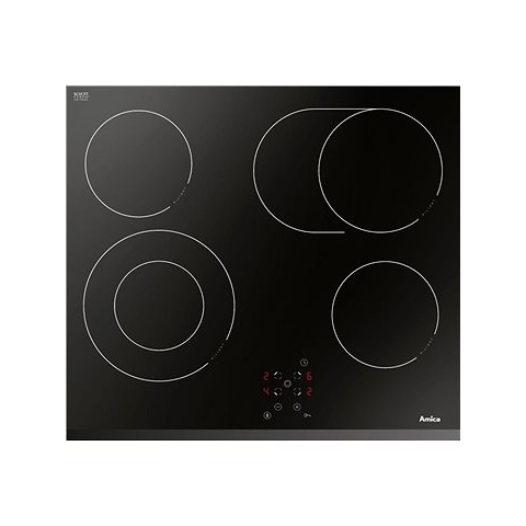 Főzőlap - kerámialapos, beépíthető, 4 főzőzóna, gyerekzár és maradékhő jelzés, főzőzónák egyesítése és booster, időzítő, érintéses vezérlés, csapott élek, keret nélküli, fekete üveg kivitel, üveg felület, 230 V csatlakozás, mérete 59,2 × 52,2 × 5,5 cm (Sz×Mé×Ma) A kiváló AMICA elektromos kerámia főzőlappal bármit megfőzhetsz, amit csak eszedbe jut. Az üvegkerámia főzőlap rendkívül népszerű, mivel költséghatékony, modern kialakítrású