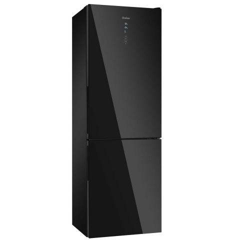 Hűtőszekrény fagyasztóval - E energiaosztály, 223 l hűtőszekrény kapacitás, 94 l fagyasztó kapacitás, 4 polc, LED világítás, két hűtőkör, Total No Frost, méretei 185,5 × 59,5 × 64,2 cm (ma × szé × mé) Az AMICA FK3356.4GBDFZAA kombinált hűtőszekrény elegáns fekete üveg kivitelben 317 l teljes térfogatot kínál, ebből 223 l a hűtőrész és 94 l a fagyasztó számára. A készülék a C energiaosztályba tartoz