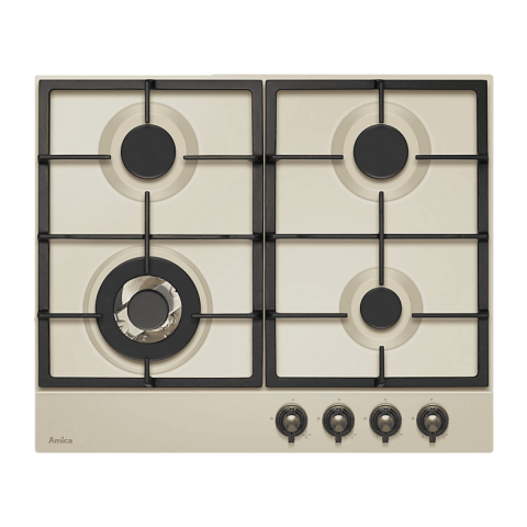 60 cm széles Elefántcsont színű gázlap 4 gázégő ( 1 Wok) Elektromos szikra Front vezérlés Öntöttvas rács