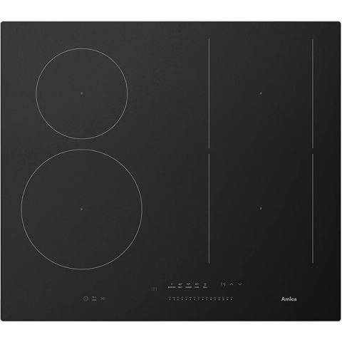 Főzőlap - indukciós, beépíthető, 4 főzőzóna, automatikus edényérzékelés, gyerekzár és automatikus védelem kifutás esetén, hőmérséklet megtartása, maradékhő felhasználás és booster, időzítő, érintéses vezérlés, kerekített élek, keret nélküli, matt üveg kivitel, üveg felület, 230 V és 400 V csatlakozás, mérete 59,2 × 52,2 × 4,9 cm (Sz×Mé×Ma), a készülék csatlakoztatásához villanyszerelő szükséges Za pomoci indukční varné desky AMICA snadn