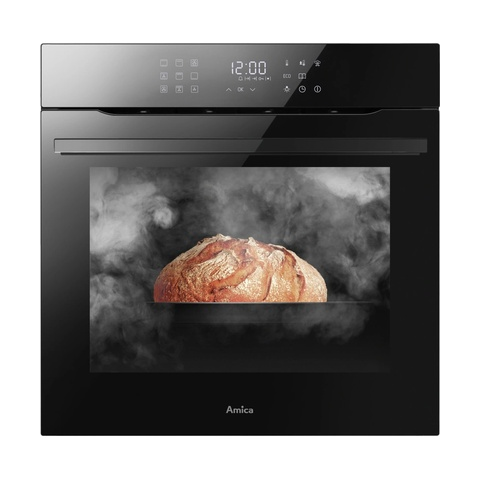 Beépíthető sütő - mérete 59,5 × 59,5 × 57 cm (M×Sz×Mé), gőzsütési funkció, űrtartalma 77 l, a felszereltség része gyors előmelegítés funkció, grill, felső, alsó sütés, körkörös fűtőelem, hőlégbefúvás, kiolvasztás funkció, légkeverés, tepsi mérete 56 × 56 cm (Sz×Mé), teleszkópos tepsi kitolás, érintéses vezérlés, tompított ajtózárás és 3 rétegű üveg, 3600 W teljesítmény, kijelző és belső világítás, 2 tepsi és 1 rács a csomagban, k