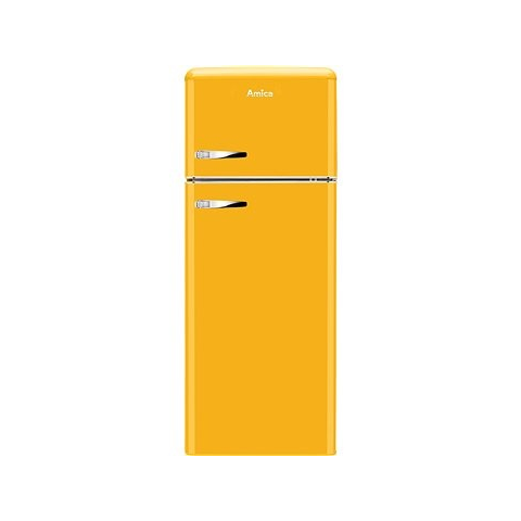 Hűtőszekrény fagyasztóval - E energiaosztály, 162 l hűtőszekrény kapacitás, 44 l fagyasztó kapacitás, 4 polc, jobb oldali zsanéros, LED világítás, statikus hűtés, méretei 144 × 55 × 61,5 cm (ma × szé × mé) Az Amica VD 1442 AY kombinált hűtőszekrény fagyasztóval retro stílusban, sárga kivitelben mindazoknak készült, akik egyedi, mégis teljesen funkcionális konyhát szeretnének kialakítani. A készülék mech