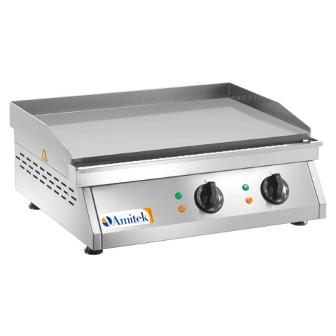 Sütőfelület típusa: sima Termosztatikus hőfokszabályzás 0-300 °C között. Zsírfogó edény kiegészítés. Több zónás fűtött sütőfelület. Rozsdamentes burkolat. Elektromos teljesítmény: 6000W 400V/3N/50-60HZ Főzőfelület:595x400 mm Mérete:600x500x200h Nettó súlya: 32 kg Bruttó súlya: 35 kg