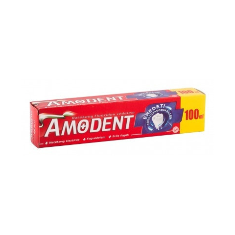 FOGKRÉM 100 ML AMODENT EREDETI ÍZ Az Amodent Eredeti ízű fogkrém egy klasszikus fogápoló termék, amely a fogak és az íny egészségének megőrzésére szolgál. A 100 ml-es kiszerelés ideális mindennapi használatra, és a márka jól ismert eredeti ízével kombi