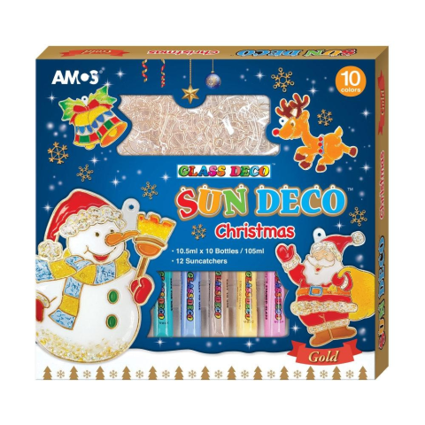 1 kép AMOS Karácsonyi üvegmatrica dekor szett, 10 szín és 12 sablon