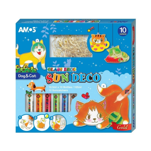 Az Amos Üvegmatrica dekor szett egy vidám és kreatív üvegfestő szett, mely lehetővé teszi, hogy a gyermekek gyönyörű, ablakon is ragyogó díszeket készítsenek. A 12 cica és kutya alakú sablonnal és 10 világos, áttetsző festékkel a készlet ideális ajándék k