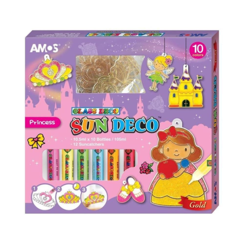 Az Amos Üvegmatrica dekor szett egy vidám és kreatív üvegfestő szett, mely lehetővé teszi, hogy a gyermekek gyönyörű, ablakon is ragyogó díszeket készítsenek. A 12 hercegnő alakú sablonnal és 10 világos, áttetsző festékkel a készlet ideális ajándék kreatí