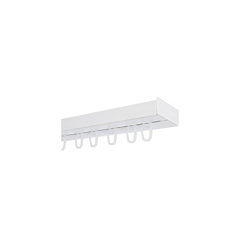 Kiváló minőségű és ár-érték arányú, fehér színű, egy soros műanyag mennyezeti sín - függönykarnis szett, függönyök rögzítéséhez.