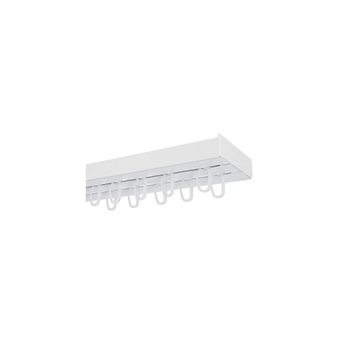 Kiváló minőségű és ár-érték arányú, fehér színű, két soros műanyag mennyezeti sín - függönykarnis szett, függönyök rögzítéséhez.