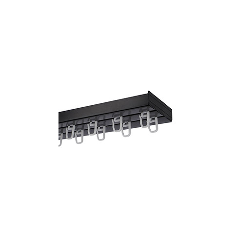 Kiváló minőségű és ár-érték arányú, fekete színű, két soros műanyag mennyezeti sín - függönykarnis szett, függönyök rögzítéséhez.