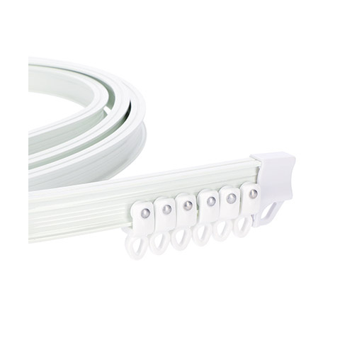 A függönysín rugalmas kialakítású, könnyen hajlítható és méretre vágható, ideális egyedi formájú terek díszítésére.
