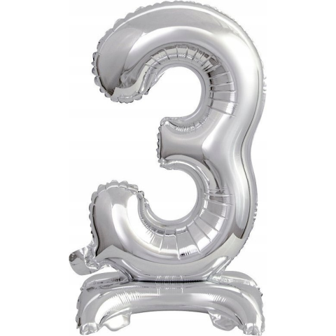 Amscan Felfújható Fólia Szám Talppal 9911726 - Ezüst, 38 cm, 3 (9911726)