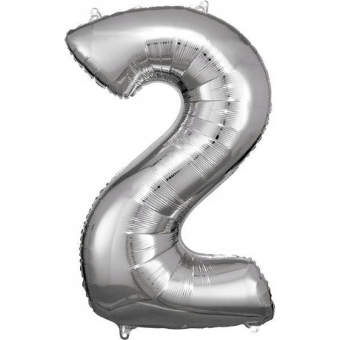Amscan Óriás Szám Fólia Lufi - 2-es, 86x53 cm, Ezüst (9906287)