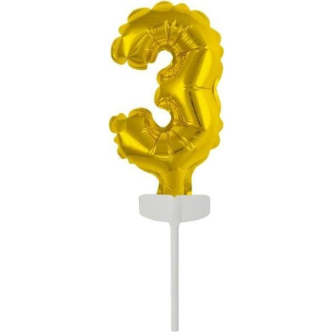Amscan Szám Fólia Lufi Tortára - 13 cm, 3-as, Arany (615994) party kellék 1 kép