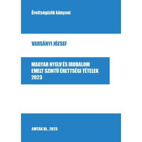 Érettségi felkészítő könyvsorozatunk újabb darabját adjuk közre. A 2021-es kiadványhoz hasonlóan kötetünk csak a 20-20 központi emelt tételt tartalmazza tételszerű kidolgozásban. A könyv előzményei: Varsányi József: Magyar nyelv és irodalom emelt szintű érettségi tételek 2021 és Varsányi József: Kiegészítő kötet a Magyar nyelv és irodalom emelt szintű érettségi tételek 2021 kötethez. AMTAK Bt, 2022. Mind az érettségiző diákoknak, mind pedig felkészí