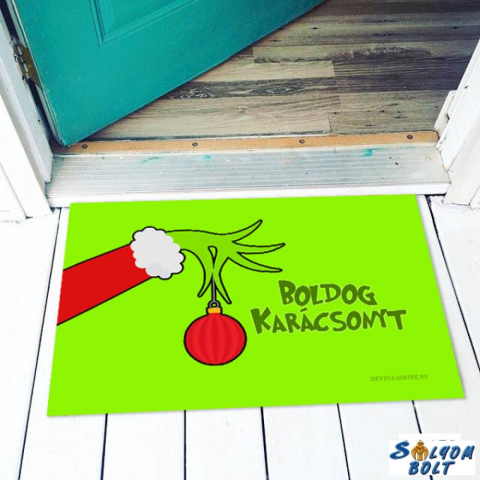 Karácsonyi mintájú lábtörlő, vicces termék Mérete: 60 x 40 cm Vastagsága: 4 mm Anyaga: 100% polyester, csúszásgátlós gumi aljjal. Felülete fényes, bársonyos hatású, a szín árnyalatokban eltérhet a képen látható mintától. Karácsonyi mintájú lábtörlő, v