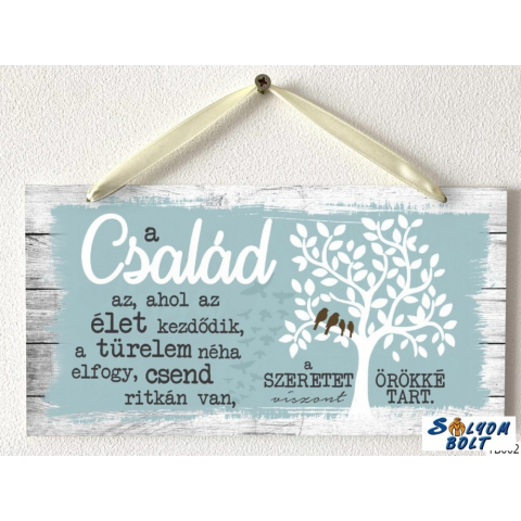 Fali dekoráció, tökéletes ajándék, felirattal. Befogó mérete: 12 x 19 cm Anyaga : 2,5 mm kemény papír Felakasztható A család az, ahol az élet kezdődik, a türelem néha elfogy, csend ritkán van, a szeretet örökké tart.