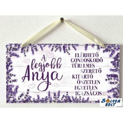 Fali dekoráció, tökéletes ajándék, felirattal. Befogó mérete: 12 x 19 cm Anyaga : 2,5 mm kemény papír Felakasztható A legjobb anya: elérhető, gondoskodó, türelmes, szerető, kitartó, önzetlen, egyetlen, igazságos.
