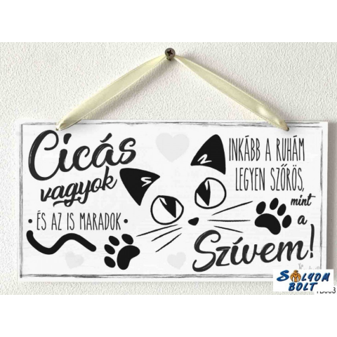 Fali dekoráció, tökéletes ajándék, felirattal. Befogó mérete: 12 x 19 cm Anyaga : 2,5 mm kemény papír Felakasztható Cicás vagyok, és az is maradok. Inkább a ruhám legyen szőrös, mint a szívem.