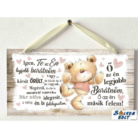 Fali dekoráció, tökéletes ajándék, felirattal. Befogó mérete: 12 x 19 cm Anyaga : 2,5 mm kemény papír Felakasztható Igen, te az én legjobb barátnőm vagy. Kicsit őrült, de kicsit én is az vagyok. Megértő, és én is megértő vagyok. Bár néha idegesít, s n