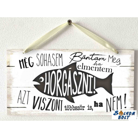 Fali dekoráció, tökéletes ajándék, felirattal. Befogó mérete: 12 x 19 cm Anyaga : 2,5 mm kemény papír Felakasztható Még sohasem bántam meg, ha elmentem horgászni, azt viszont többször is, ha nem.