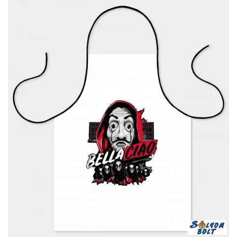 AN-PE 32 Kft szakács kötény, bella ciao, nagy pénzrablás lakástextília termékleírás