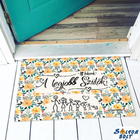 AN-PE 32 Kft Vicces színes lábtörlő, Itt laknak a legjobb szülők lakástextília termékleírás