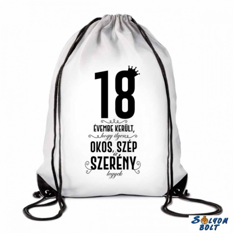 18...évembe került, hogy ilyen okos, szép és szerény legyek. Vicces hátitáska, hátizsák születésnapra Mérete: 44 x 34 cm Anyaga: poliészter, vízlepergető