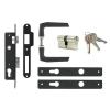1 kép Anbo portálzár garnitúra 4cm váltós + hengerzárbetét + kilincsgarnitúra fekete
