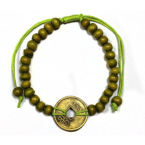 A Feng-Shui Karkötők fa gyöngyökből és szerencsehozó érmekből készültek.