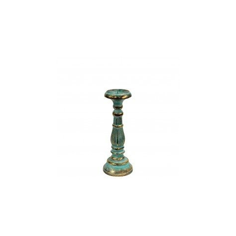 Gyönyörű kézi gyártású Nagykereskedelmi Vintage Gyertyatartók - Közepes Türkiz-Arany, melyek Indonéziában készültek Selyemakác fából. A gyertyatartó minden helységnek romantikus, luxus hangulatot kölcsönöz. Ideális nagyobb, szélesebb gyertyákhoz.