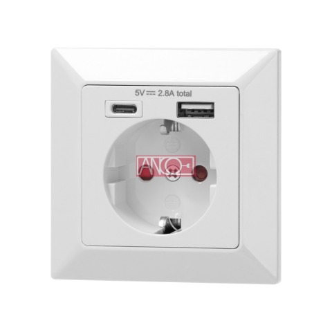 321604 - földelt, süllyesztett - kerettel - 16 A; 250 V; 60Hz - 2 USB csatlakozóval A+C: 5VDC / 2,8A - IP20: beltéri használatra - fehér
