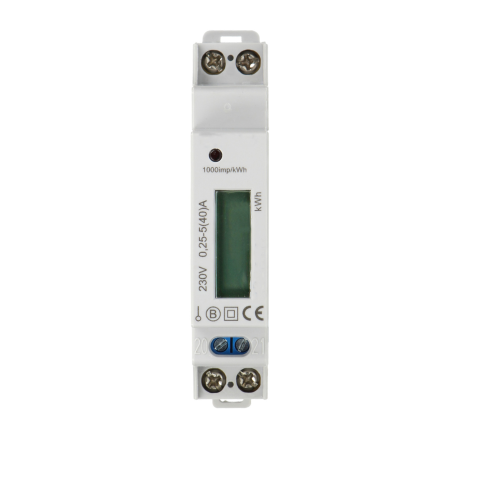 321515 - fogyasztásmérő LCD kijelzővel, 1 modul, DIN sínre szerelhető - áramerősség méréshatár: 0,25-40A, direkt bekötéssel - referencia áram: 5A - tápfeszültség: 230V AC, frekvencia: 50Hz +/- 10% - impulzuskimenettel rendelkezik: 1000 impulzus/1Kwh - kij