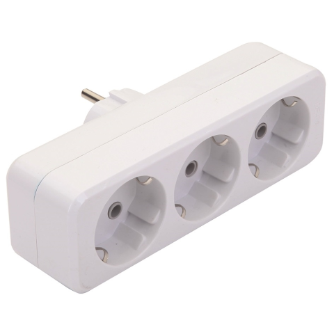 Átalakító, 3 csatlakozóaljzat, földelt, 90 fokban elforgatott