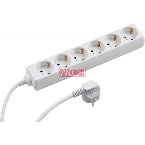1 kép Anco Asztali elosztó 6-os, 5m, fehér10A, 250V, 3x1,5mm2