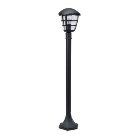 321452 - maximum teljesítmény: 60 W, E27 - 230 V; 60Hz - magasság: 100 cm - alumínium - átlátszó búrával - IP44: kültéri; apró méretű szilárd tárgyak ellen védett (>1 mm); fröccsenő víz ellen védett minden irányból - fekete Kültéri állólámpa, 100 cm át