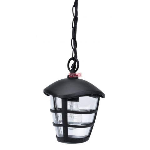 321022 - maximum teljesítmény: 60 W, E27 - 230 V; 60Hz - alumínium - átlátszó búrával - IP44: kültéri; apró méretű szilárd tárgyak ellen védett (>1 mm); fröccsenő víz ellen védett minden irányból - fekete Kültéri E27 függeszték fekete láncos lámpa átlá