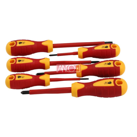 370251 - VDE Csavarhúzó készlet, 6 db, 1000 V - SL 2,5 x 75 mm - SL 4,0 x 100 mm - SL 5,5 x 125 mm - PH0 3 x 60 mm - PH1 5 x 80 mm - PH2 6 x 100 mm