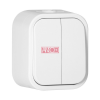 321695 - falon kívüli - 10 A; 250 V; 60Hz - IP54: kültér; por ellen védett (nem károsító mértékű behatolás megengedett); fröccsenő víz ellen védett minden irányból - két billentyűből álló kapcsoló, két különálló helyiség egy helyről történő fel-és lekapcs