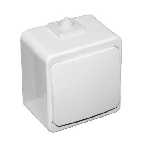 321349 - falon kívüli - 10 A; 250 V; 60Hz - IP44: kültéri; apró méretű szilárd tárgyak ellen védett (>1 mm); fröccsenő víz ellen védett minden irányból - egy fogyasztó (pl- lámpatest) egy helyről történő kapcsolására alkalmas - szorítórugós bekötés - mére
