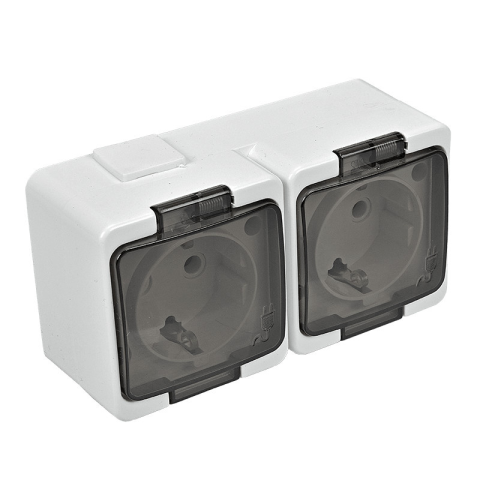 321346 - falon kívüli - átlátszó csapófedéllel - vízszintes - 16 A; 250 V; 60Hz - IP44: kültéri; apró méretű szilárd tárgyak ellen védett (>1 mm); fröccsenő víz ellen védett minden irányból - csavaros bekötésű - méretek: 125 x 65 x 44 mm - fehér