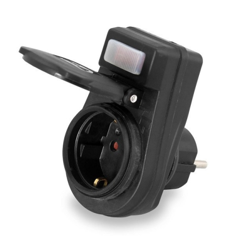 240311 - 16 A; 250 V; 3680 W, IP44 - jelzőfényes kapcsolóval - csapfedeles - fekete